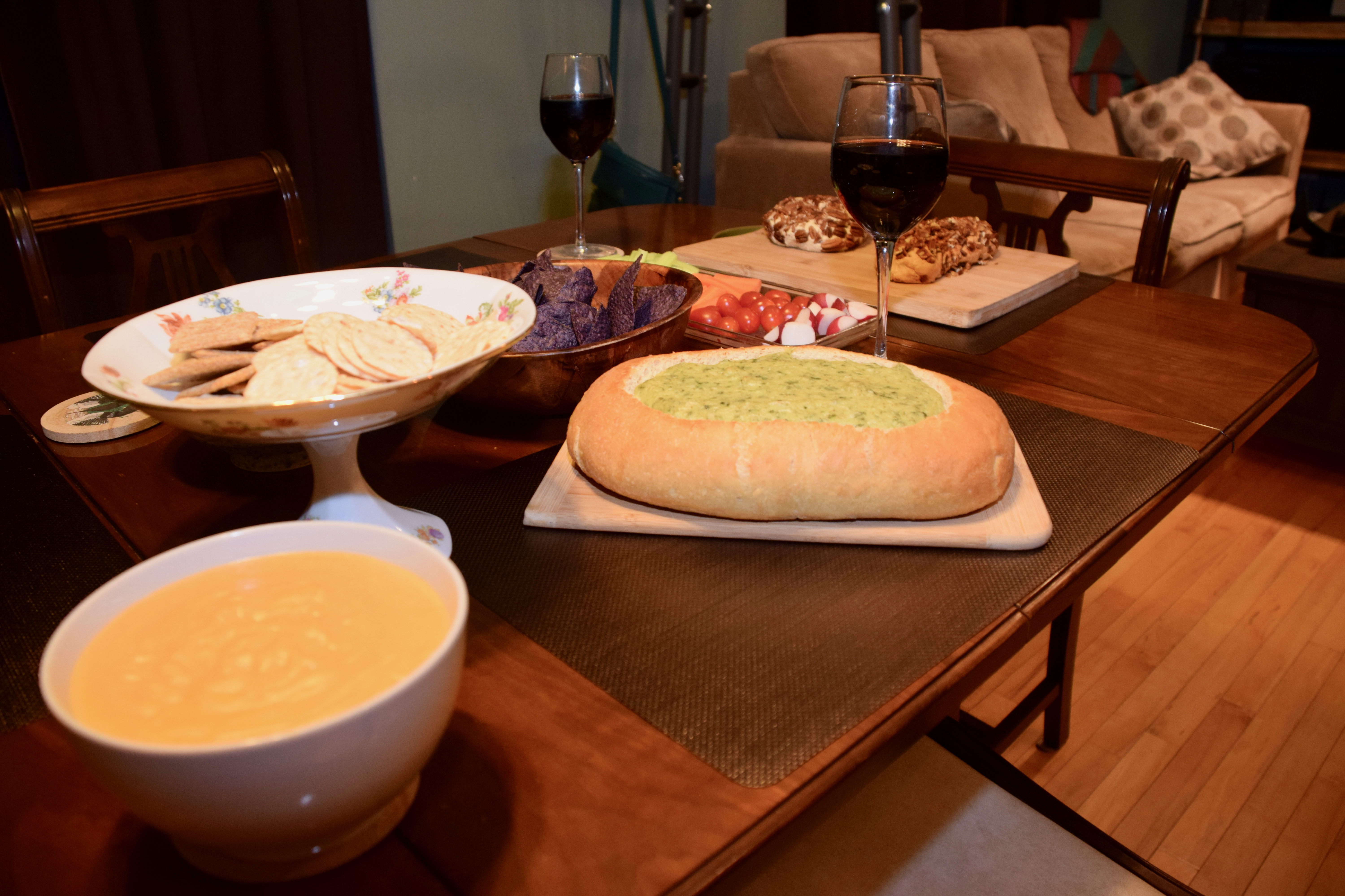 What you see here is vegan nacho cheese, mozzarella – spinach dip, smoked gouda cheese log, and sharp cheddar cheese ball. All were DELICIOUS!