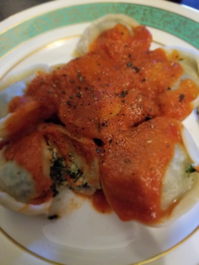 At some point during my childhood, the shop changed owners and stopped offering fresh-cut pasta. Instead, they offered pre-prepared pasta, sauces, and other dishes. My palette “matured” and I found a new favourite: spinach, ricotta tortellini with a basil tomato sauce. *finger kiss* Delish! The full, savoury flavour of the spinach, paired with the tangy ricotta, and washed over with the sweetly acidic tomato sauce practically made my tastebuds dance. (Can you tell I like to eat?)