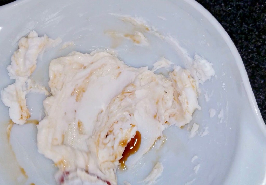 Cream together the coconut oil (solid) and icing sugar in a large bowl.