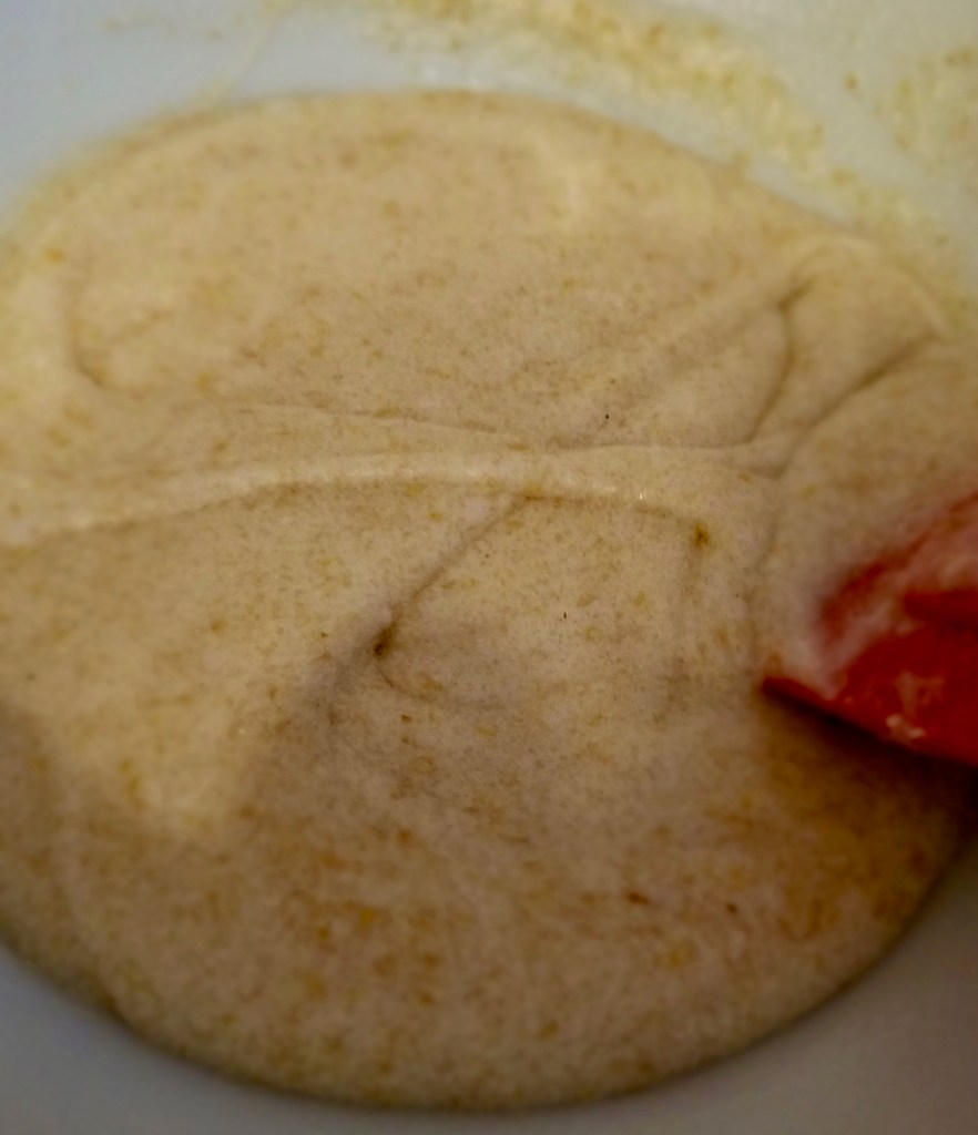 Prepare the flax egg. Mix ground flax with warm water, beat, and let sit for 5-10 minutes.